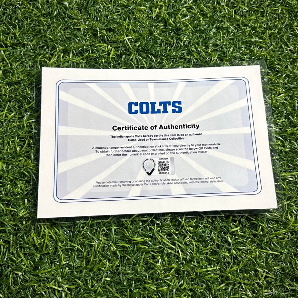 This jersey was acquired directly from the Indianapolis Colts Organization & pairs with a Team-Issued Certificate of Authenticity.